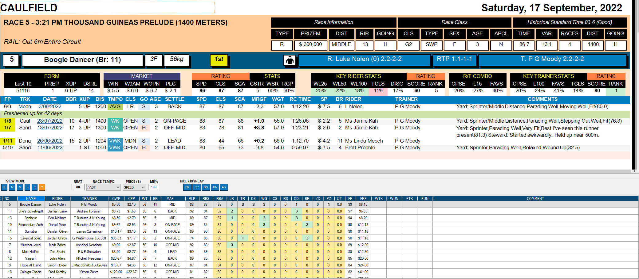 - Strike rates, win, place, and profit and loss measures.